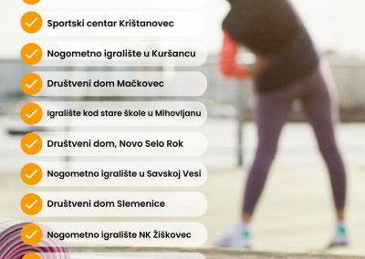 Tako će 26. rujna u 19.00 sati u svim mjesnim odborima na središnjim lokacijama u naseljima na području Grada Čakovca, uz čakovečki Trg Republike biti održano zajedničko dvadeset minutno vježbanje predvođeno kineziolozima ili licenciranim trenerima.