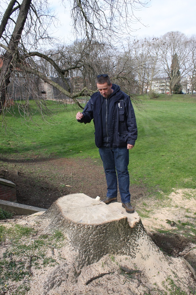 Voditelj hortikulture u GKP Čakom Zdravko Abramović rekao je da nije srušeno niti jedno zdravo stablo. Pokazao je to na panju stabla srušenog poljskog jasena u blizini ulazne kule u Stari grad. Iako stablo na prvi pogled u presjeku djeluje zdravo, ono to nije. Tamnije središte stabla ukazuje na simptome centralne truleži. To stablo više nije imalo zdravu statiku te je postojala mogućnost da se kod jačeg vjetra sruši na pješačku stazu.