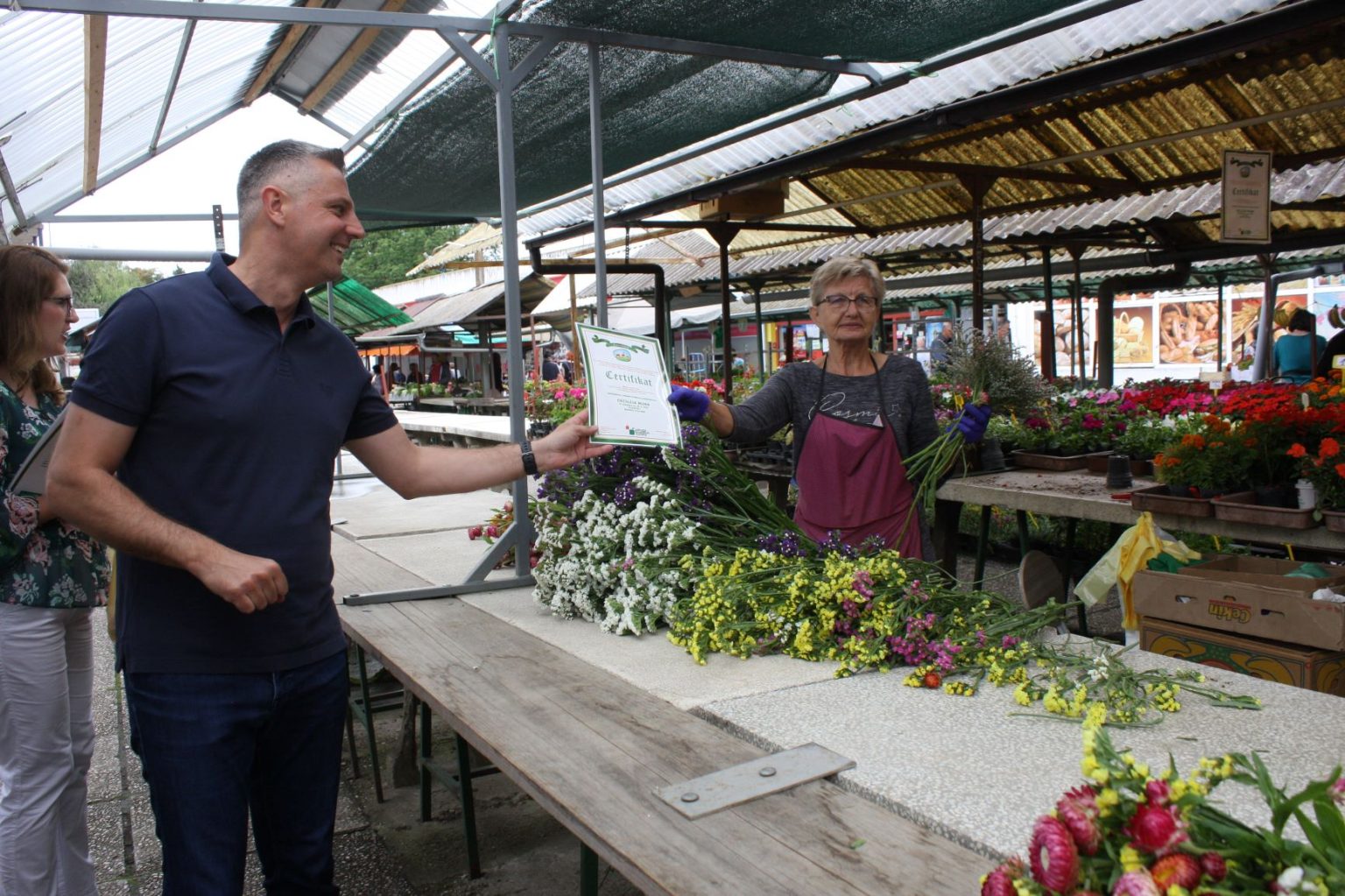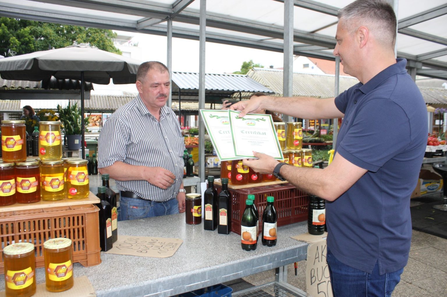 U petak je održana podjela certifikata OPG-ima koji prodaju na čakovečkoj Gradskoj tržnici. Riječ je o projektu Udruge hrvatskih tržnica, koji se u Čakovcu provodi već osam godina, a preko kojeg se jamči kvaliteta i izvornost proizvoda koji se prodaju na tržnici. Certifikate su vlasnicima i predstavnicima OPG-ova dijelili čakovečki gradonačelnik Stjepan Kovač te direktor Gradskog komunalnog poduzeća Čakom, Ivica Perhoč.