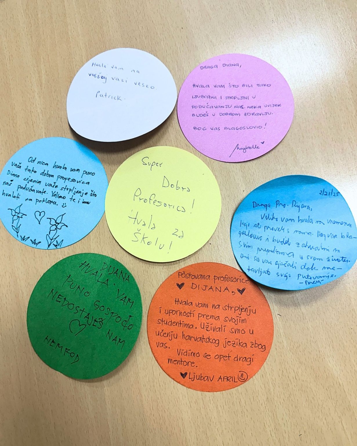 Na završnom satu vladala je emotivna atmosfera. Polaznici su profesorici Fric pripremili poseban poklon i napisali poruke zahvalnosti, izražavajući koliko im je tečaj značio i koliko su ponosni na svoj napredak. Istaknuli su kako im je ovaj tečaj ne samo pomogao u učenju jezika, već ih i povezao s novim ljudima, stvorio nova prijateljstva te učinio njihovu prilagodbu životu u Hrvatskoj lakšom i ljepšom.