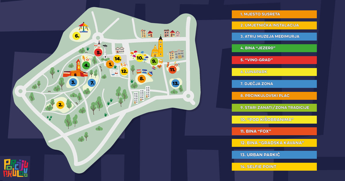 Tako ćete, na primjer, od Franjevačkog trga, gdje će se nalaziti Zona tradicije i zanata, moći krenuti kroz Strossmayerovu ulicu prema Parku Rudolfa Kropeka, tj. Urban Parkiću. Iz Urban Parkića trebat će vam niti minuta lagane šetnje do Prcinkulovskog placa, a isto toliko i do Ulice Matice hrvatske i samog centra Čakovca. Praznog hoda neće biti jer gdje god se okrenete šarenilo Porcijunkulova okupirat će vam osjetila. Iz centra grada ponovno možete krenuti prema Ulici kišobrana ili Perivoju Zrinski, koji je i ove godine pun sadržaja za sve generacije.