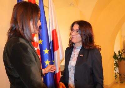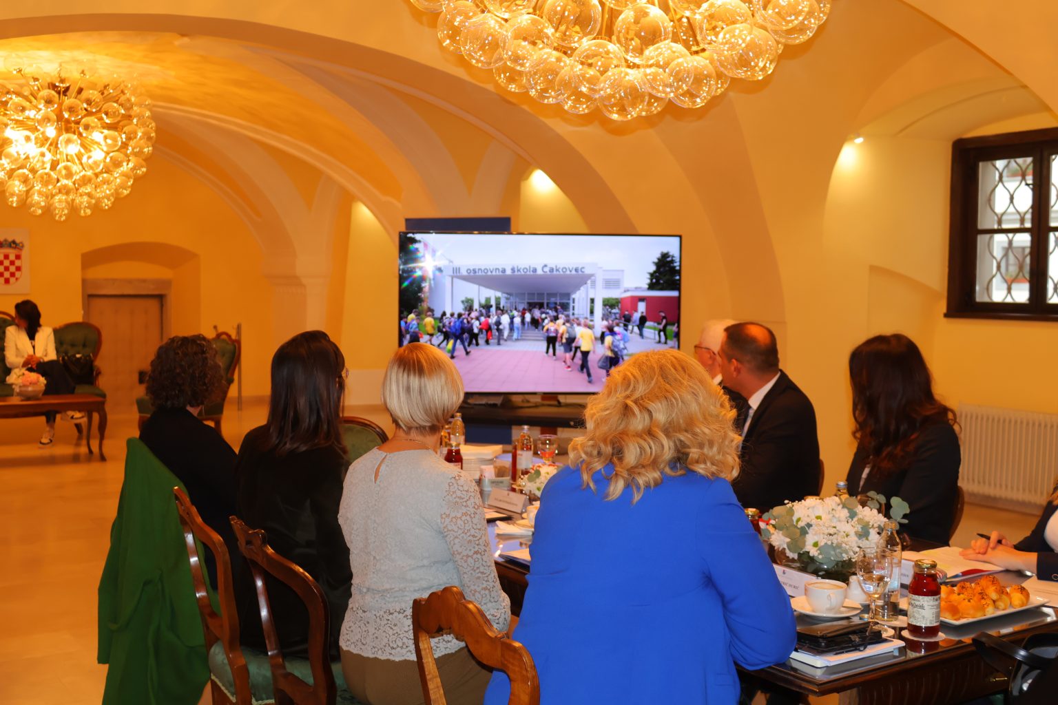 Župan Matija Posavec izrazio je srdačnu dobrodošlicu veleposlanici te joj poželio uspješan nastavak karijere. Župan je također prezentirao uzlet Međimurske županije kroz presjek naših projekata realiziranih od ulaska Republike Hrvatske u Europsku uniju: „Županija smo koja se na vrijeme pripremila za ulazak u EU te su naše razvojne agencije odmah započele s pripremom projekata. Taj rad rezultirao je nizom ulagačkih ciklusa, od zdravstva do kulture i turizma koji su, po realizaciji, Međimurje pozicionirali i na svjetskoj karti, dok smo na nacionalnoj razini deset godina na čelu ili u samom vrhu po privlačenju sredstava EU-a. Osim što smo gospodarski najjača regija Hrvatske predvodnici smo održivog turizma za što smo prvi u našoj zemlji te kao četvrta regija u svijetu okrunjeni oznakom Green Destination“, rekao je župan, dok je gradonačelnica  Čakovca Ljerka Cividini dodala: „Od veleposlanice očekujemo da zainteresirane američke ulagače informira o našim potencijalima koji su – kada je o Međimurju riječ – veći od ostatka Hrvatske jer smo proizvodni motor naše zemlje“, rekla je gradonačelnica Čakovca uz naglasak da je Grad osobito orijentiran na ulaganja koja donose boljitak djeci i mladima.