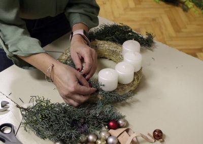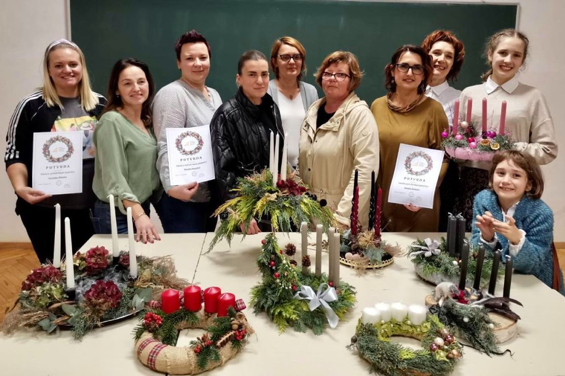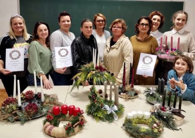 Na radionici blagdanskog aranžiranja koje je vodila Ljiljana Škrobar, mag.ing.hortikulture i vlasnica obrta Hortikultura i floristika “Veronika”, polaznice su naučile kako izraditi vlastiti adventski vijenac od raznih materijala koristeći kreativne tehnike aranžiranja. Nakon što su izradile svoje vijence, polaznice su ih ponijele kućama kako bi obogatile svoje blagdanske stolove novim i drugačijim aranžmanima.