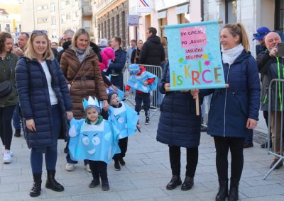 Svojim maštovitim i jedinstvenim maskama oduševili su velik broj prolaznika i sudionika, ponosnih roditelja kao i ostalih članova svojih obitelji, a pritom su se odlučili za maske kojima su predstavljali ježiće, superjunake, kokice, munje, cvjetiće, pahuljice, policajce i drugo.