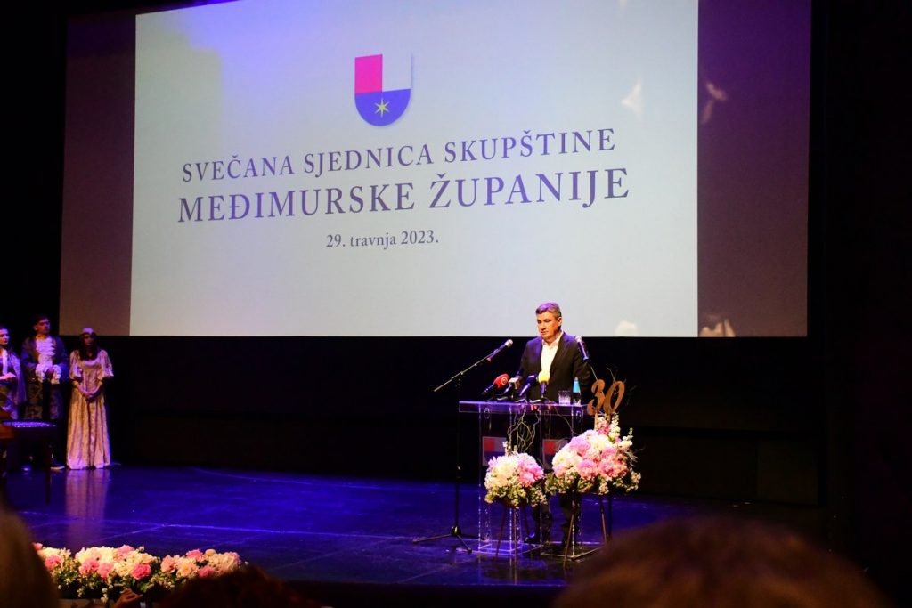 „Međimurske i Međimurci, sretan vam dan županija“ poručio je predsjednik Republike Hrvatske Zoran Milanović na svečanoj sjednici Skupštine Međimurske županije te kazao kako je Međimurje imalo jedan poseban razvoji put, a zasluge za ovaj uspjeh su zasluge aktualnog vodstva, ali i svih onih prije njega. „Sretno vam bilo prvih 30 godina pametnog, razumnog i uspješnog vođenja županije. Želim vam da se i dalje borite za svoje zacrtane ciljeve i razvijate na ponos svih stanovnika županije, te da i dalje budete uzor mnogim drugima.“ Istaknuo je predsjednik Milanović te se osvrnuo na velike hrvatske obitelji, Zrinske i Frankopane koji su imali kritičnu instrumentalnu ulogu u očuvanju hrvatstva i dizanju hrvatstva i u ove prostore. Predsjednik se u svome govoru osvrnuo i na novi zakon kojim se županijama preuzimaju upravljačka prava nad općim bolnicama te kazao kako je oduzimanje upravljačkih prava županijama gruba centralizacija kojom se neće popraviti zdravstveni sustav kao ni financijsko stanje bolničkog sustava, jer najviše gubitaka stvaraju zdravstvene ustanove i bolnički centri koji su u vlasništvu države.