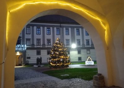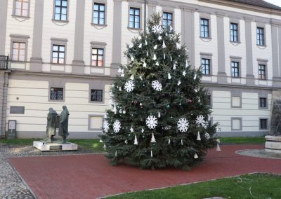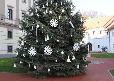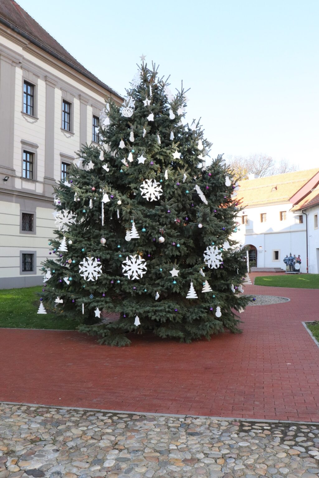 Tako je u dvorištu Starog grada postavljen veliki bor za čiju je instalaciju bila potrebna čak i dizalica, a za kićenje su bile neophodne i ljestve. U svemu tome muzejskoj ekipi, predvođenoj ravnateljicom Mašom Hrustek Sobočan, pomogli su učenici Treće osnovne škole Čakovec i njihova učiteljica Štefanija Mustač.