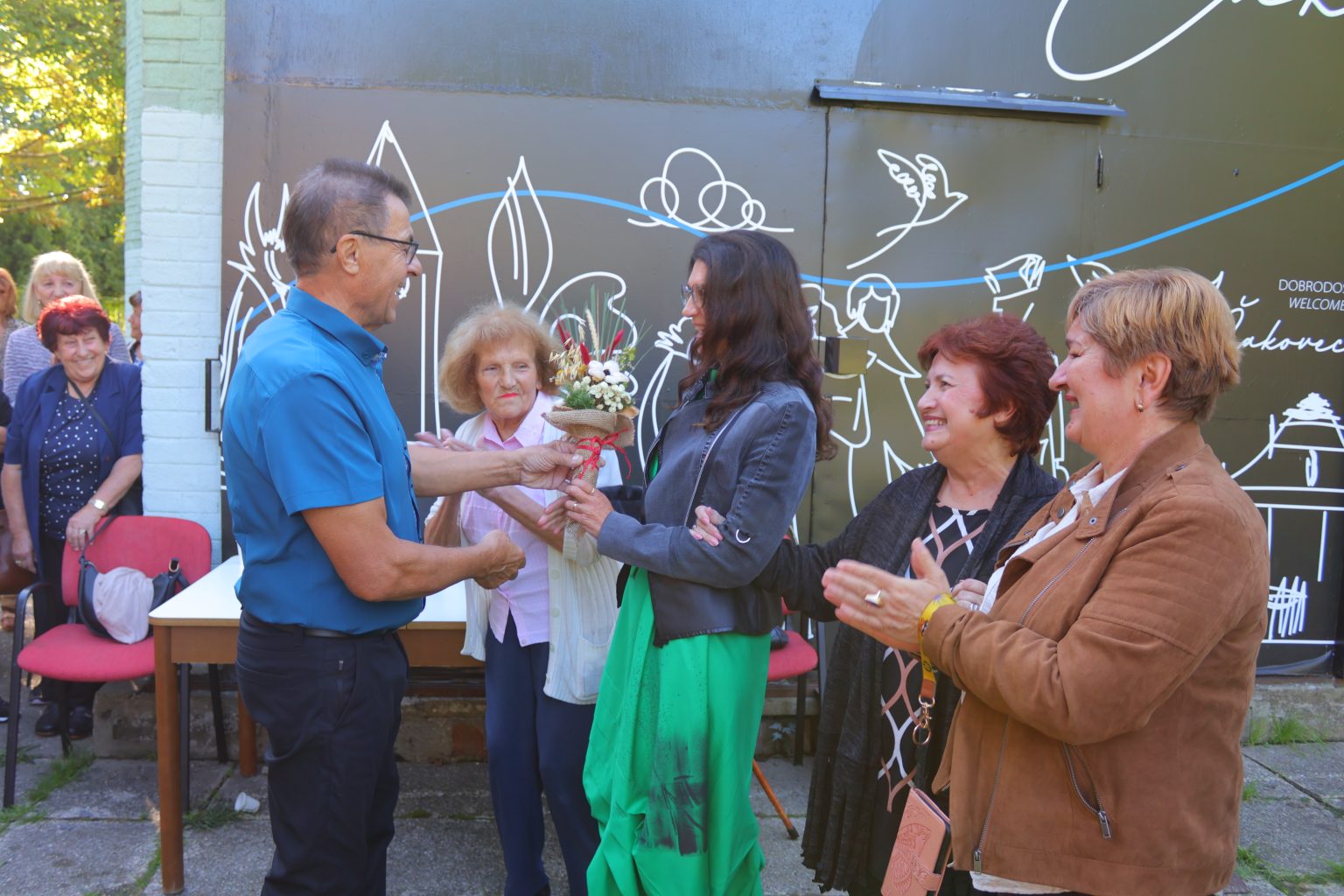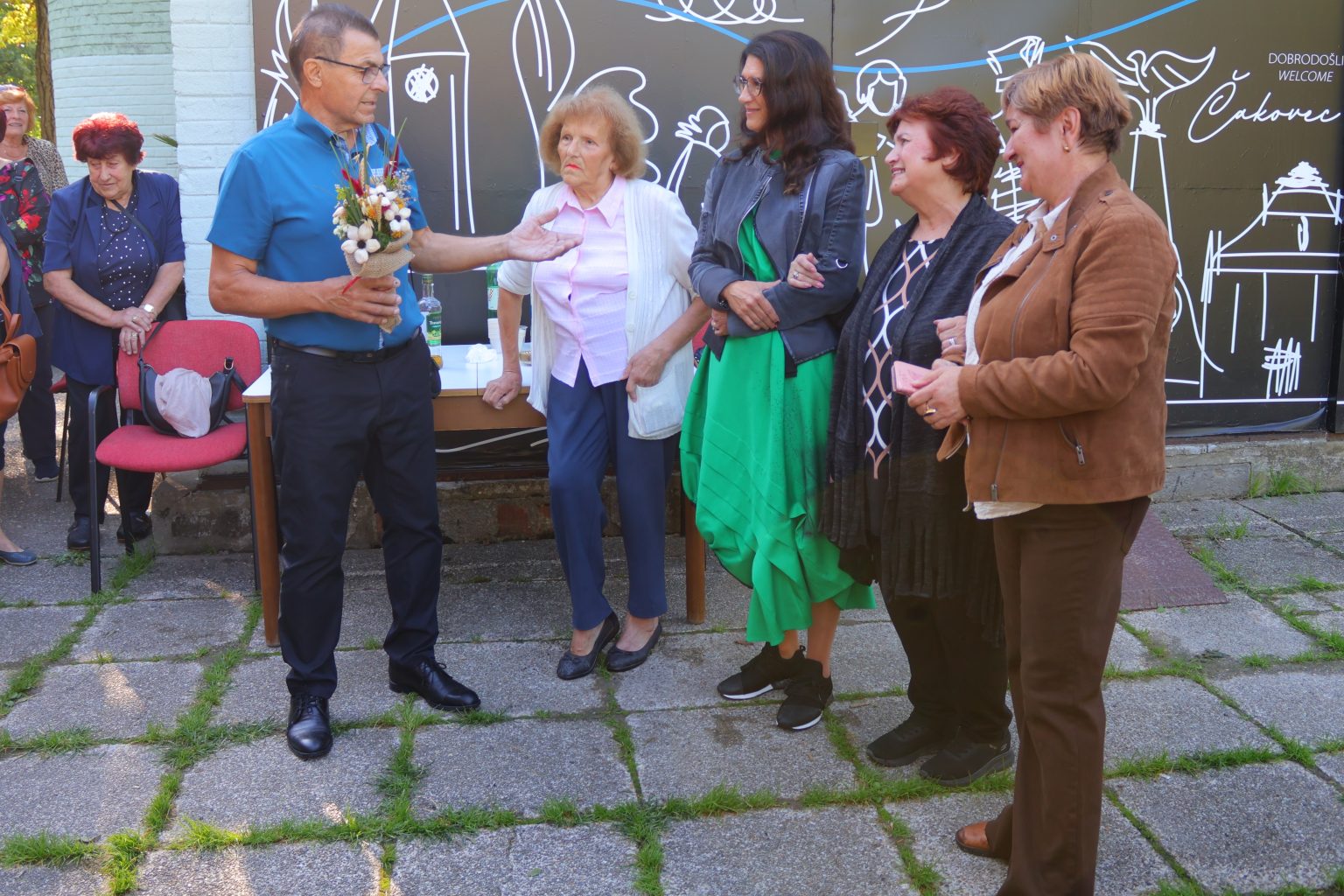 Prijateljske odnose njeguju već 35 godina, a ovaj susret samo je jedan u nizu brojnih koji su organizirani tijekom svog tog vremena. Goste su ispred prostora Udruge umirovljenika Grada Čakovca u Perivoju Zrinskih dočekali gradonačelnica Grada Čakovca Ljerka Cividini te predsjednica Udruge umirovljenika Grada Čakovca Dubravka Cilar sa suradnicima. Susret je počeo pjesmom, koju im je u znak dobrodošlice otpjevala Marija Jambrošić.