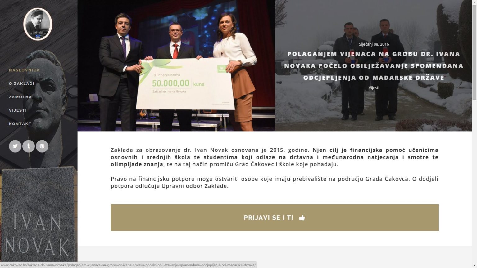 Zakladu za obrazovanje dr. Ivan Novak Grad Čakovec osnovao je prošle godine, s ciljem davanja financijske potpore učenicima osnovnih i srednjih škola te studentima koji se natječu na državnim i međunarodnim natjecanjima, smotrama ili olimpijadama znanja.
