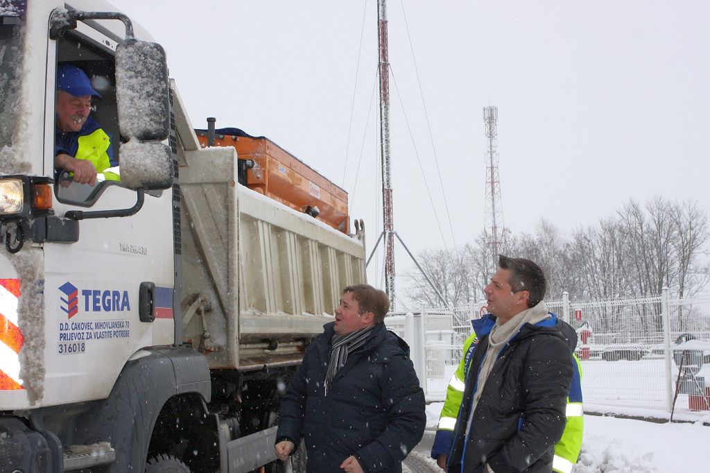 Ekipe koje čiste i sole ceste obišli su gradonačelnik Grada Čakovca Stjepan Kovač i zamjenik gradonačelnika Mario Medved. Glavne prometnice koje su u gradskoj ingerenciji, počele su se soliti već sinoć u 23 sata, posebice nadvožnjak, podvožnjak, te kružni tokovi. Oko pet sati ujutro, kad je visina snježnog pokrivača bila oko 10 centimetara, ralice su izašle na teren te su se počele čistiti glavne ceste, a već nakon pola sata počelo je čišćenje svih ostalih prometnica te pješačke zone.