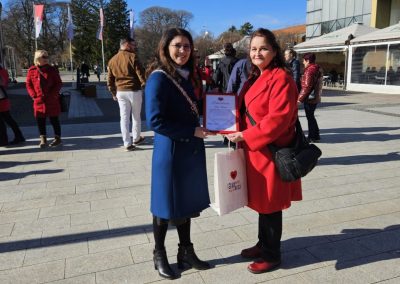 Tim je povodom zgrada Doma sindikata na Trgu Republike u Čakovcu bila osvijetljena crvenom bojom, a posljednjeg dana obilježavanja, u srijedu, 14. veljače, točno u podne pušteno je na Trgu Republike 200 crvenih balona u obliku srca. Boja, baloni i sama inicijativa poslužili su kao simbolična podrška više od 10.000 djece sa srčanim bolestima koliko ih je trenutno diljem Hrvatske te njihovim roditeljima i obiteljima.