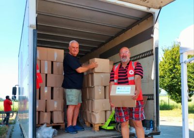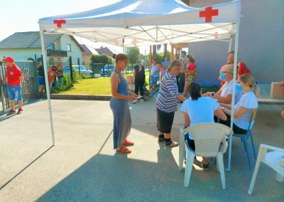Prva podjela organizirana je u srijedu, 7. srpnja i na području Grada Čakovca. U samom gradu Čakovcu podijeljeno je 150 paketa u prostorijama Crvenog križa, dok je 630 paketa podijeljeno u dvorištu Obiteljskog centra u Kuršancu. U prvoj podijeli korisnici su primili pakete higijene, dok će sljedeća podjela, ona s paketima hrane, biti organizirana krajem srpnja ove godine. Osim volontera Gradskog društva Crvenog križa Čakovec, u organizaciji podjele sudjelovali su i članovi Udruge hrvatskih branitelja Domovinskog rata liječenih od PTSP-a Međimurske županije koji su redovito od velike pomoći u sličnim humanitarnim akcijama.