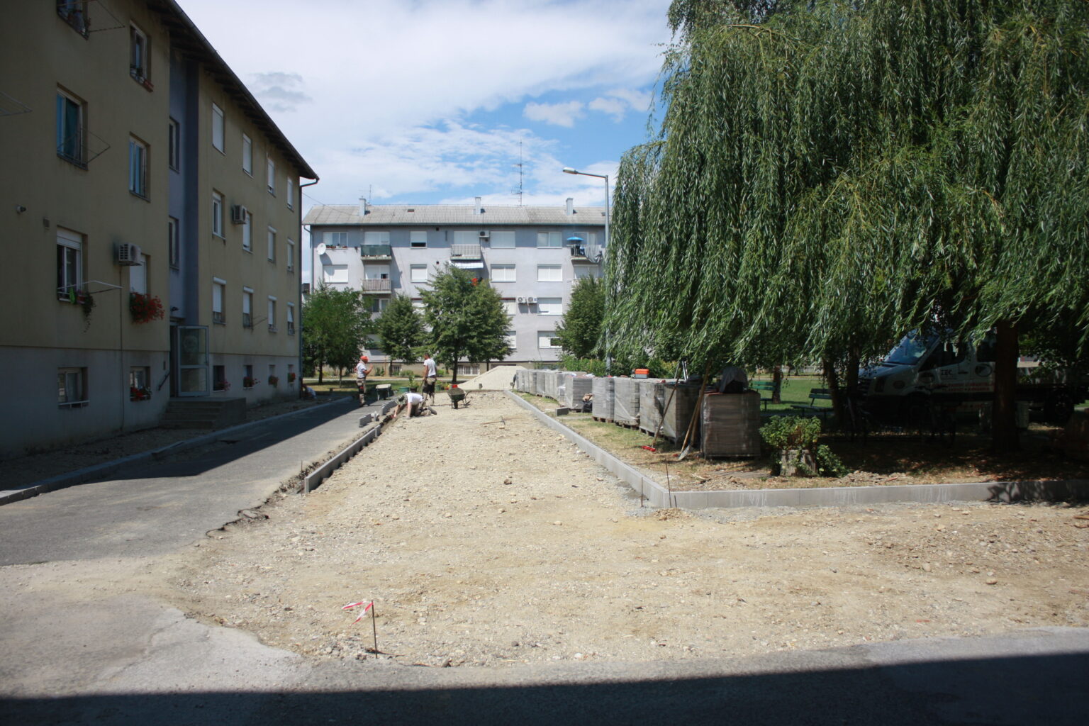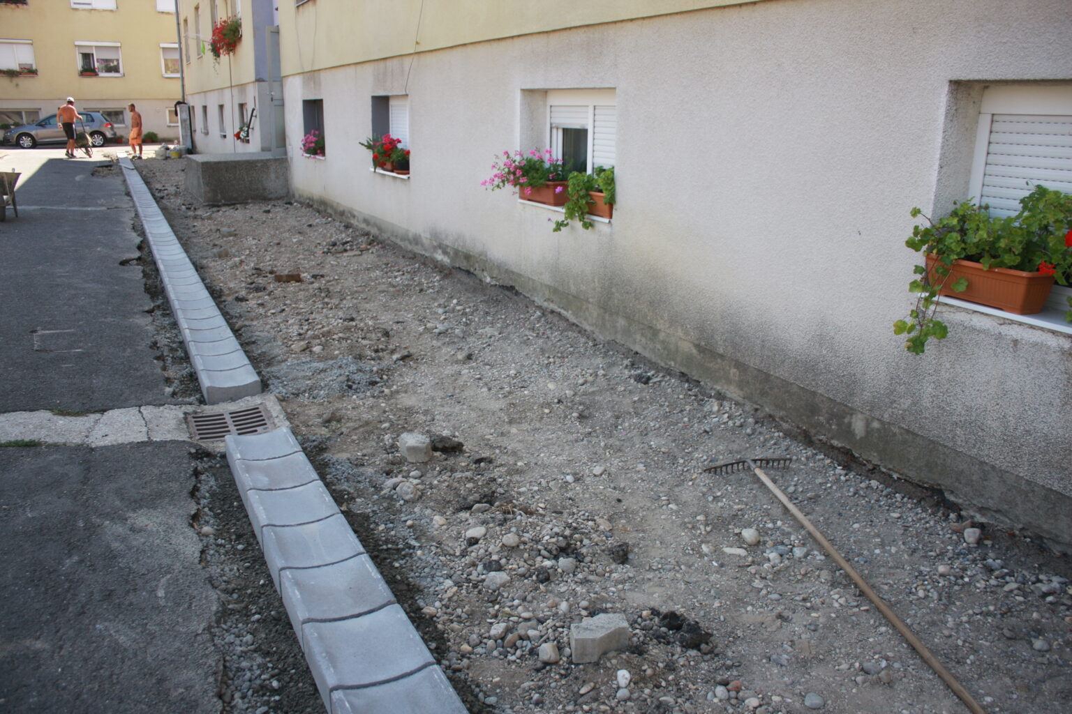 Radovi oko zgrada u Istarskoj ulici 12, 14 i 16 u punom su jeku, a prije samog finalnog uređenja parkirališta kao posljednje faze projekta, postavljaju se travnate ploče s rubnicima, rješava se oborinska odvodnja te pristupne ceste i staze.