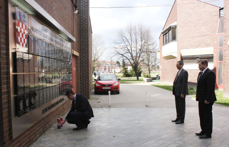 U ZNAK SJEĆANJA NA POKOJNOG DRAGUTINA LAJTMANA (16.02.1964. – 27.02.1993.) GRADSKI SU ČELNICI ZAPALILI SVIJEĆU KOD SPOMEN ZIDA POGINULIM BRANITELJIMA.