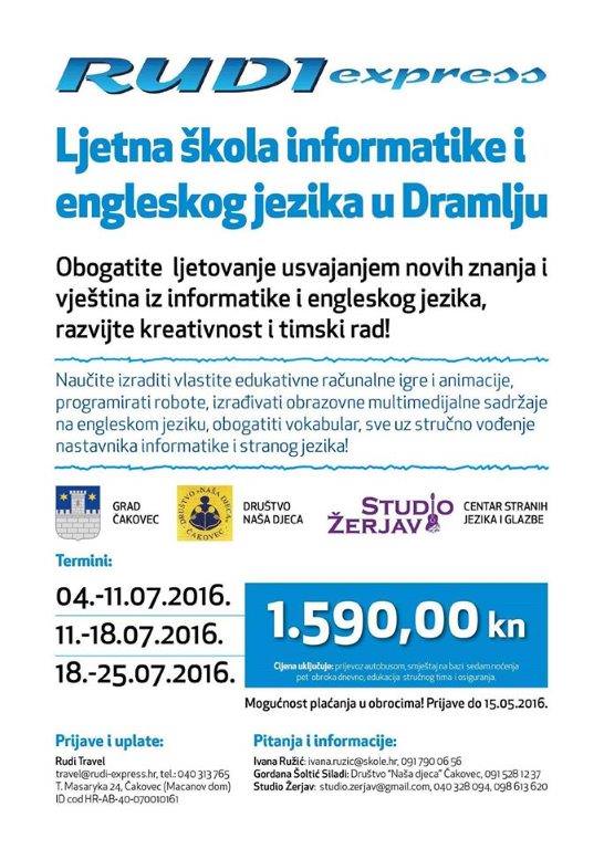 Naučite izraditi vlastite edukativne računalne igre i animacije, programirati robote, izrađivati obrazovne multimedijalne sadržaje na engleskom jeziku, obogatiti vokabular, sve uz stručno vodstvo nastavnika informatike i stranog jezika!