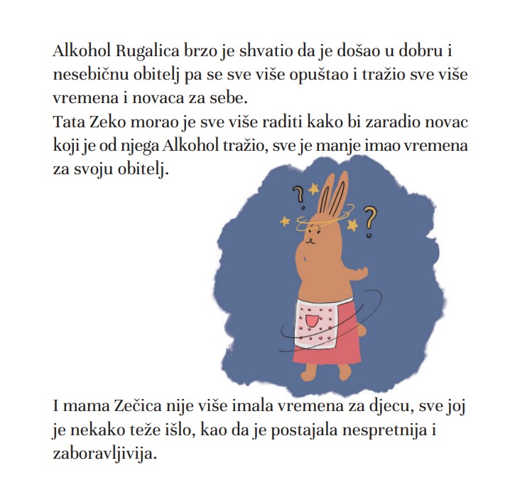 Priču su djeca jako dobro prihvatila, a odgojitelji i učitelji su je ocijenili kao koristan alat u radu s djecom. Slikovnica je prevedena na slovenski jezik te je tiskana pod naslovom „Alkohol Zlobec na obisku“. Naime, za djecu predškolske dobi ova slikovnica na razumljiv način problematizira moguće opasnosti konzumacije alkohola u korelaciji s temom sigurnosti u prometu. Preko likova zečje obitelji djeca mogu učiti o posljedicama konzumacije alkohola na sigurnost svih sudionika u prometu, a također mogu shvatiti važnost odgovornog ponašanja u zaštiti svoje obitelji.