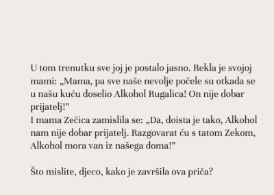 Pijenje alkohola na ovim je prostorima društveno prihvatljivo ponašanje, duboko ukorijenjeno u običaje i tradiciju te je nužno provoditi preventivne aktivnosti usmjerene osvješćivanju javnosti o štetnim posljedicama pijenja alkohola, a preporučljivo je s njima započeti u što ranijoj životnoj dobi, jer se stavovi o zdravlju i dobrim životnim navikama stječu od najranijeg djetinjstva. Stoga su posebno vrijedni preventivni programi poput ovoga, usmjereni prema cijeloj obitelji, pa i njenim najmlađim članovima u čemu i Grad Čakovec daje veliku potporu.