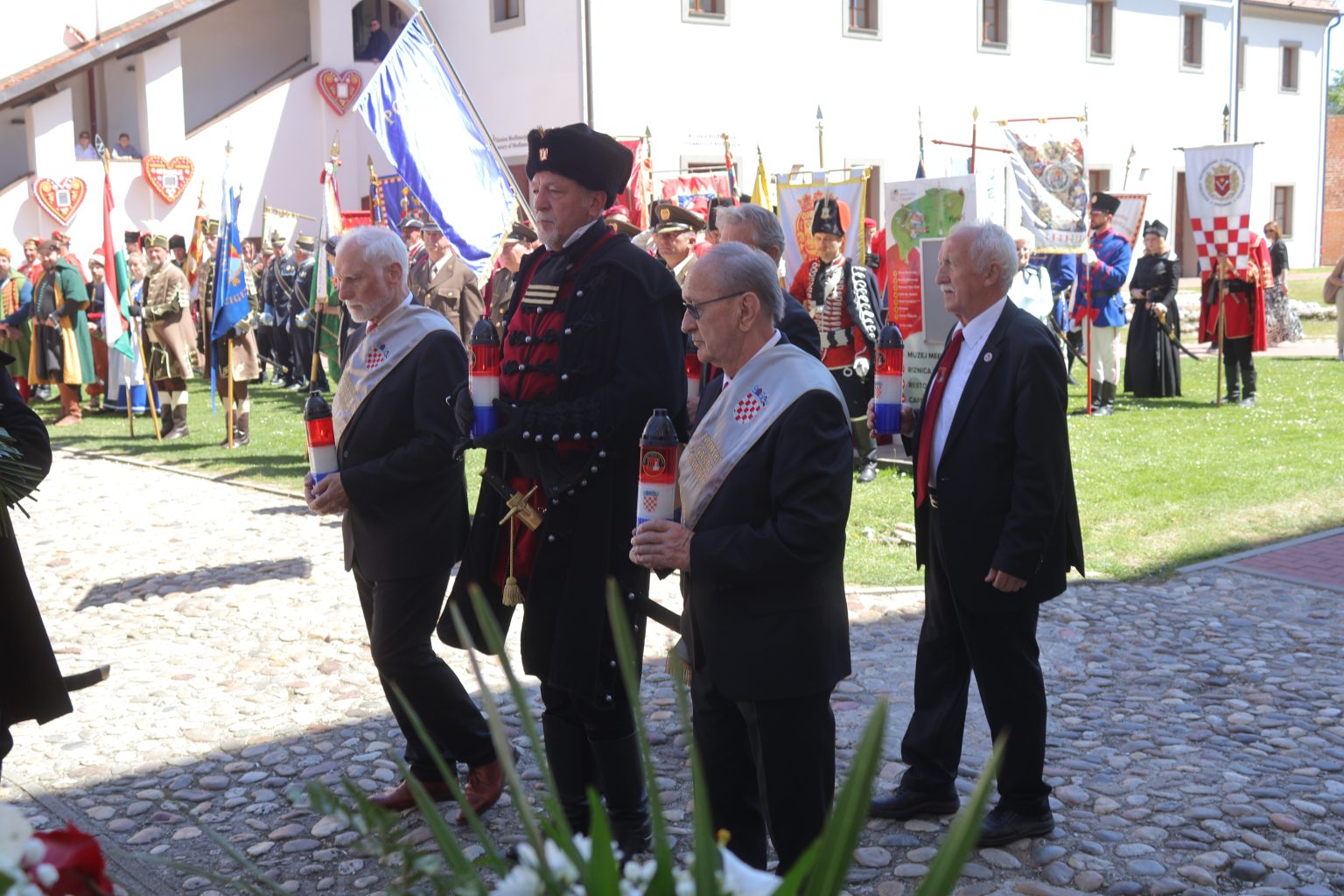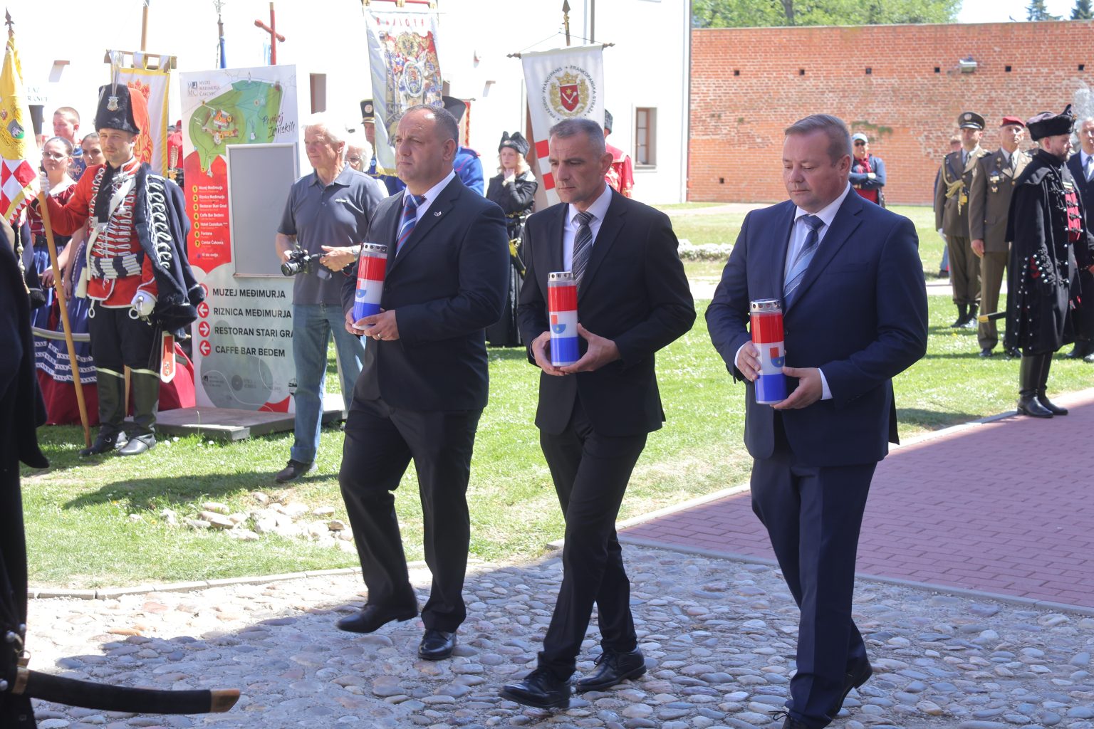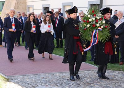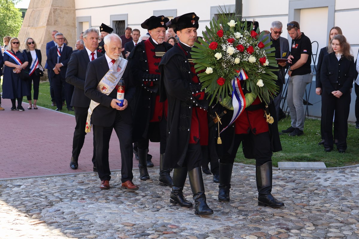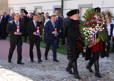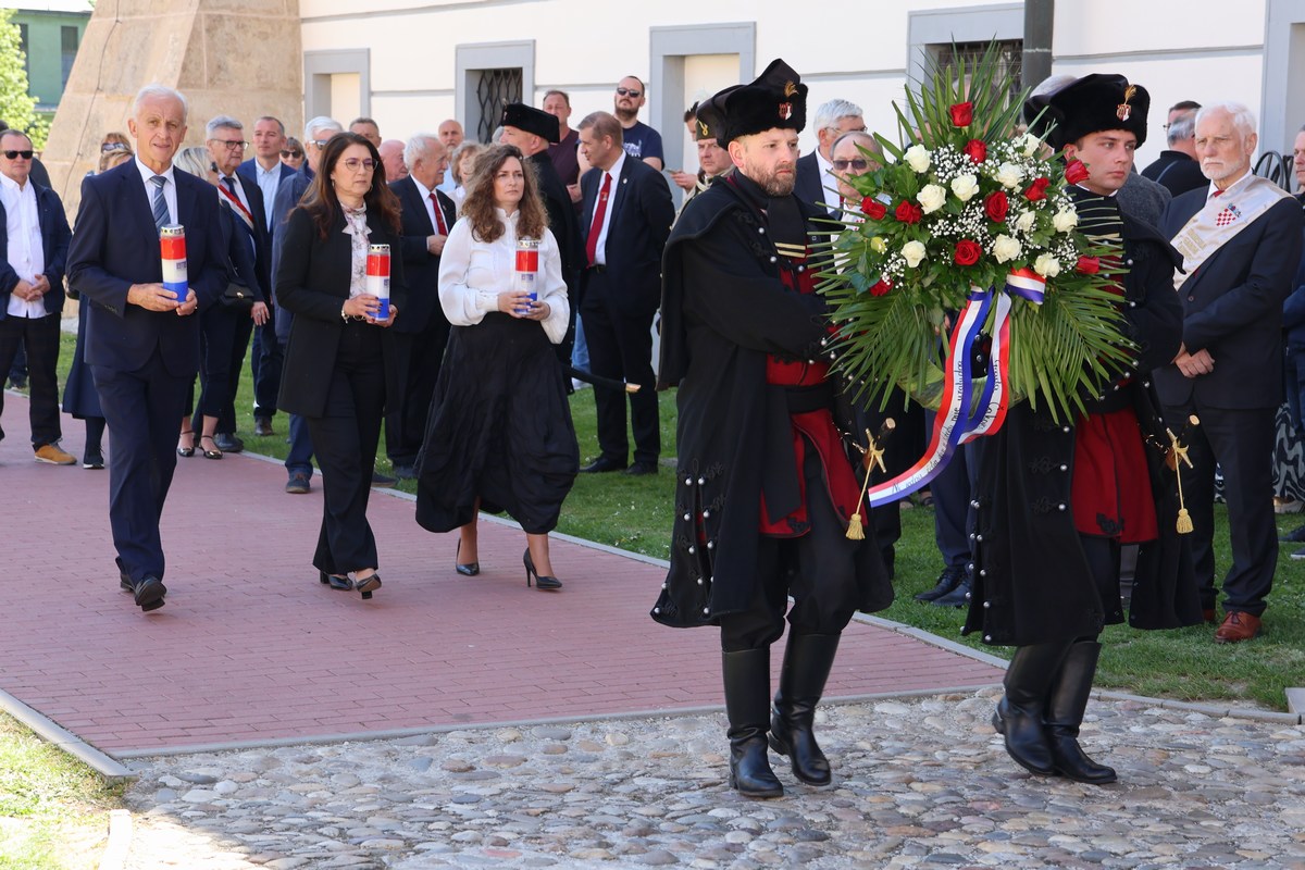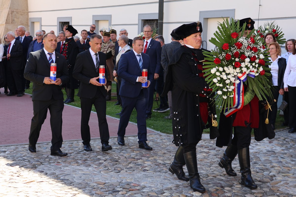 Svečanost je nastavljena polaganjem vijenaca i paljenjem svijeća kod spomen-zida poginulim i nestalim hrvatskim braniteljima te u dvorištu palače Zrinski, uz spomenik „Oproštaj“. Tom su prigodom prigodne govore održali predsjednik Zrinske garde Đuro Bel, župan MatijaPosavec te izaslanik predsjednika Hrvatskog sabora i Vlade Republike Hrvatske, saborski zastupnik i gradonačelnik Preloga Ljubomir Kolarek.