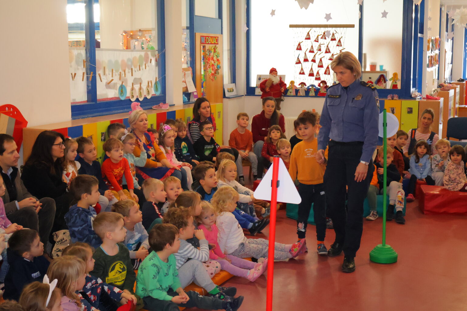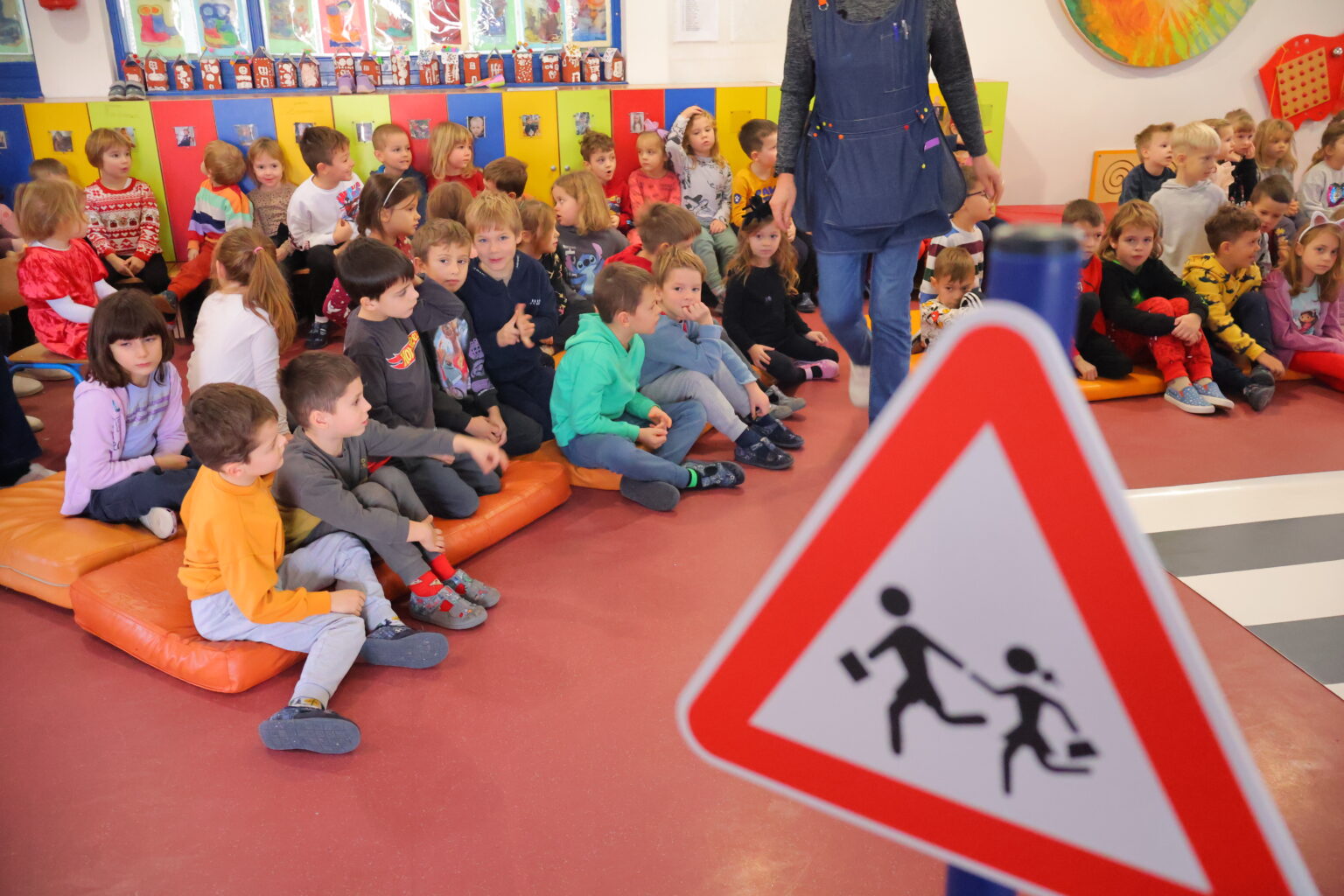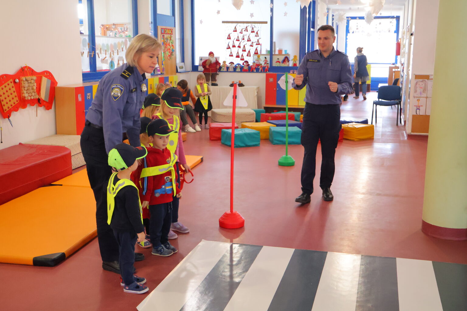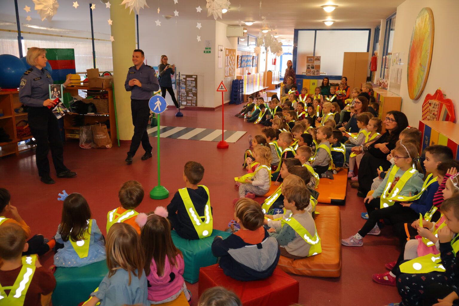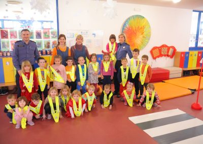 Gosti iz Policijske uprave međimurske djecu su pritom učili, a neke tek podsjećali kako se sigurno kretati u prometu, kako se prelazi cesta, učili ih prepoznavanju prometnih znakova, koje opasnosti prijete u prometu i drugo. Saznali su zašto je neophodno da u vožnji sjede u svojim sjedalicama, ali i na što moraju posebno obratiti pozornost kad sa svojim odgojiteljicama ili obitelji idu u šetnju. Stotinjak djece, na njima zanimljiv i njihovoj dobi prihvatljiv način, na praktičnom je primjeru učilo kako se sigurno kretati u prometu. Tako je u prostorima dječjeg vrtića postavljen improvizirani poligon sa zebrom i prometnim znakovima.