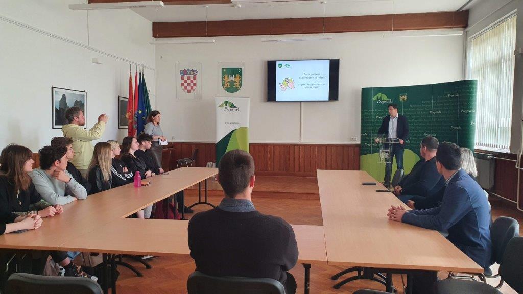 Niko Vurušić, Leon Žarković, Nola Tušek, Bianca Strbad, Katarina Bartolić, Borna Borković, Julijana Patafta i Ema Škrobar u Gradskoj vijećnici u Pregradi imali su prilike učiti o procesu participativnog budžetiranja, odnosno zajedničkog planiranja proračuna mladih i gradske uprave koje se u tom gradu vrlo uspješno provodi unatrag nekoliko godina. Ugostili su ih pritom gradonačelnik Marko Vešligaj, savjetnica za društvene djelatnosti i odnose s javnošću Petra Vdović te voditelj LAG-a Zagorje-Sutla Hrvoje Novak.