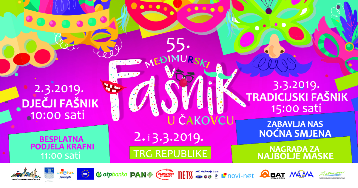 Ovog vikenda maske će ponovno zavladati ulicama Čakovca u organizaciji Turističke zajednice grada Čakovca. Već više od pola stoljeća u gradu Čakovcu održava se Međimurski fašnik, a ove godine stiže nam 55. veselo izdanje po redu. Tako dugogodišnja manifestacija, koja promocijom tradicije našega kraja okuplja velik broj sudionika, danas predstavlja jedan od najvećih kulturno- tradicijskih događaja sjeverozapadne hrvatske. Već je poznato da je, sad već daleke 1964. godine, osnovano tadašnje Turističko društvo s namjerom organizacije Fašnika u Čakovcu i upravo iz tog razloga nam je svima ta manifestacija, uz sve ostale koje TZ organizira, posebice prirasla srcu. Također, tu je i ta snažno izražena tradicijska komponenta, kao dio međimurske kulturne baštine, s obzirom na pridavanje posebne važnosti tradicijskim maskama. Iz godine u godinu ta manifestacija privlači sve veći broj gostiju iz svih krajeva te uz fašničke skupine iz Međimurja, dolaze i skupine iz ostalih krajeva Hrvatske i susjednih zemalja, njih preko dvadesetak.