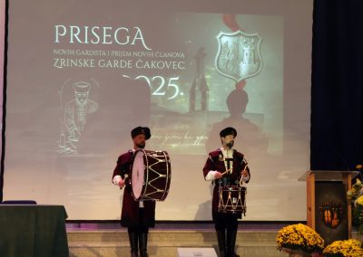 U dvorani Srednje škole Čakovec ovog četvrtka je održana svečanost prijema novih članova u redove Zrinske garde Čakovec. Tom su prigodom u gardu primljena šestorica novih gardista, koji su prethodno uspješno završili razdoblje stažiranja, te petnaest civilnih članova i članica udruge.