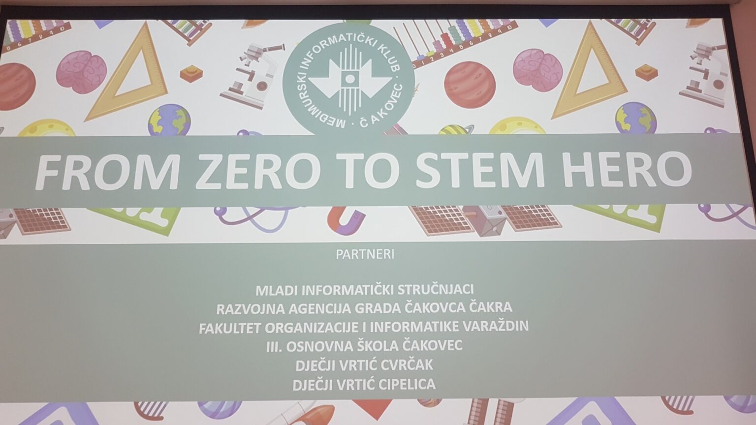 U multimedijalnoj dvorani Tehnološko-inovacijskog centra Međimurje predstavljen je projekt „From zero to STEM hero“ koji za glavni cilj ima popularizaciju STEM-a (znanost, tehnologija, inženjerstvo i matematika) kod djece i mladih te njihovu pripremu za poslove i izazove budućnosti. Prijavitelj je udruga Međimurski informatički klub, a partneri udruga Mladi informatički stručnjaci (MIS), III. osnovna škola Čakovec, čakovečki dječji vrtići „Cipelica“ i „Cvrčak“, FOI Varaždin i Razvojna agencija Grada Čakovca – Čakra.
