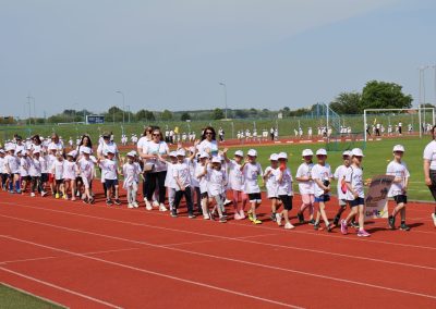 Program je već tradicionalno krenuo svečanim defileom svih sudionika vrtićke olimpijade, njihovih odgajatelja i voditelja, a po jedan predstavnik svakog vrtića imao je čast nositi olimpijski plamen. Sportski dan u Čakovcu mogao je krenuti podizanjem olimpijske zastave, koju su nosili prošlogodišnji pobjednici iz Dječjeg vrtića Cipelica – Pia KraljićSven LackovićJakov PandurovićGrga RatajecLana BožićLora KorotajJakov Vinko i Lukas Fodor.