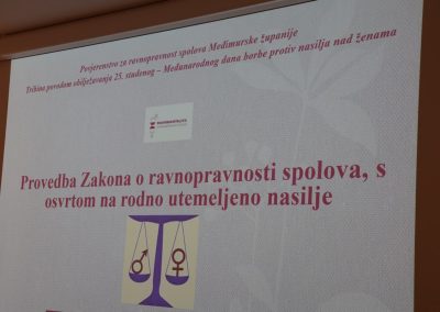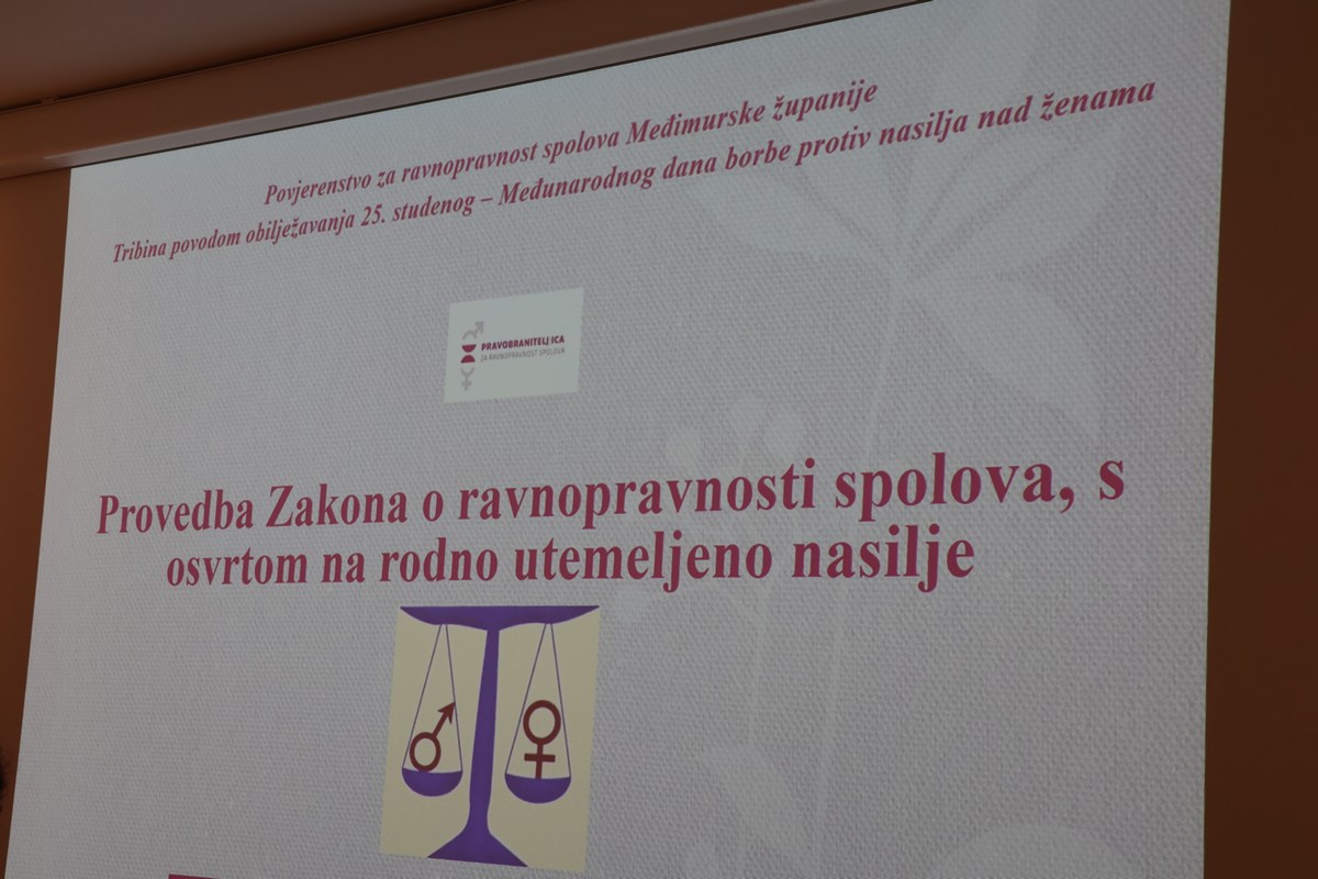 Potom je u Riznici Međimurja održana tribina u organizaciji Povjerenstva za ravnopravnost spolova Međimurske županije, čija je predsjednica Marija Prekupec pozdravila sudionike i posjetitelje tribine, istaknuvši važnost aktualiziranja pitanja zaštite žena od svih oblika nasilja.