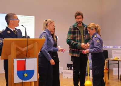 Svečanost su svojim prekrasnim izvedbama upotpunili Policijska klapa Sveti Mihovil i glazbena umjetnica Marija Jambrošić, dok su rezanjem vrpce izložbu otvorili Mihaela Jurčević i Vlatko Štampar, djeca poginulih hrvatskih branitelja Ivana Oreškog i Vlade Štampara.