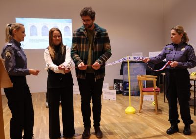 Načelnik Policijske uprave međimurske Ivan Sokač istaknuo je u pozdravnom govoru kako je riječ o postavu koji na suvremen način predstavlja rad policije čineći ga bližim i razumljivijim svim generacijama, te zahvalio Županiji i Gradu Čakovcu na podršci. Uzvanicima otvorenja obratili su se i načelnik Policijske akademije Josip Ćelić te ravnatelj Muzeja policije Nikša Jelovčić istaknuvši da je spektar područja policijskog rada o kojima izložba govori vrlo širok, uz naglasak na svakodnevici kriminalističke policije.