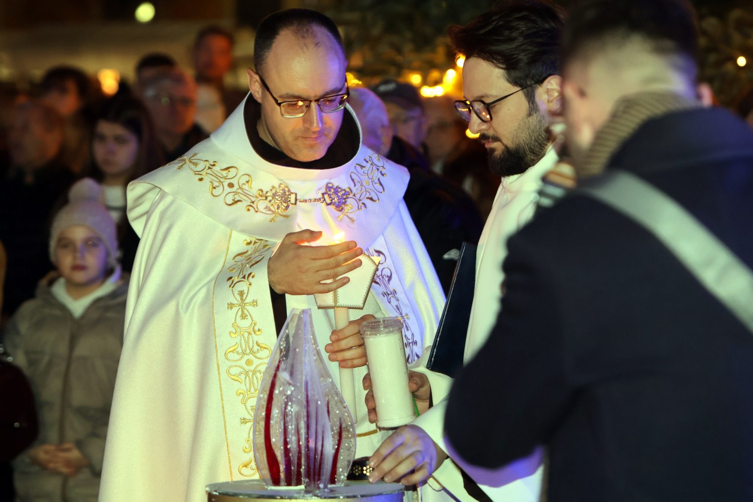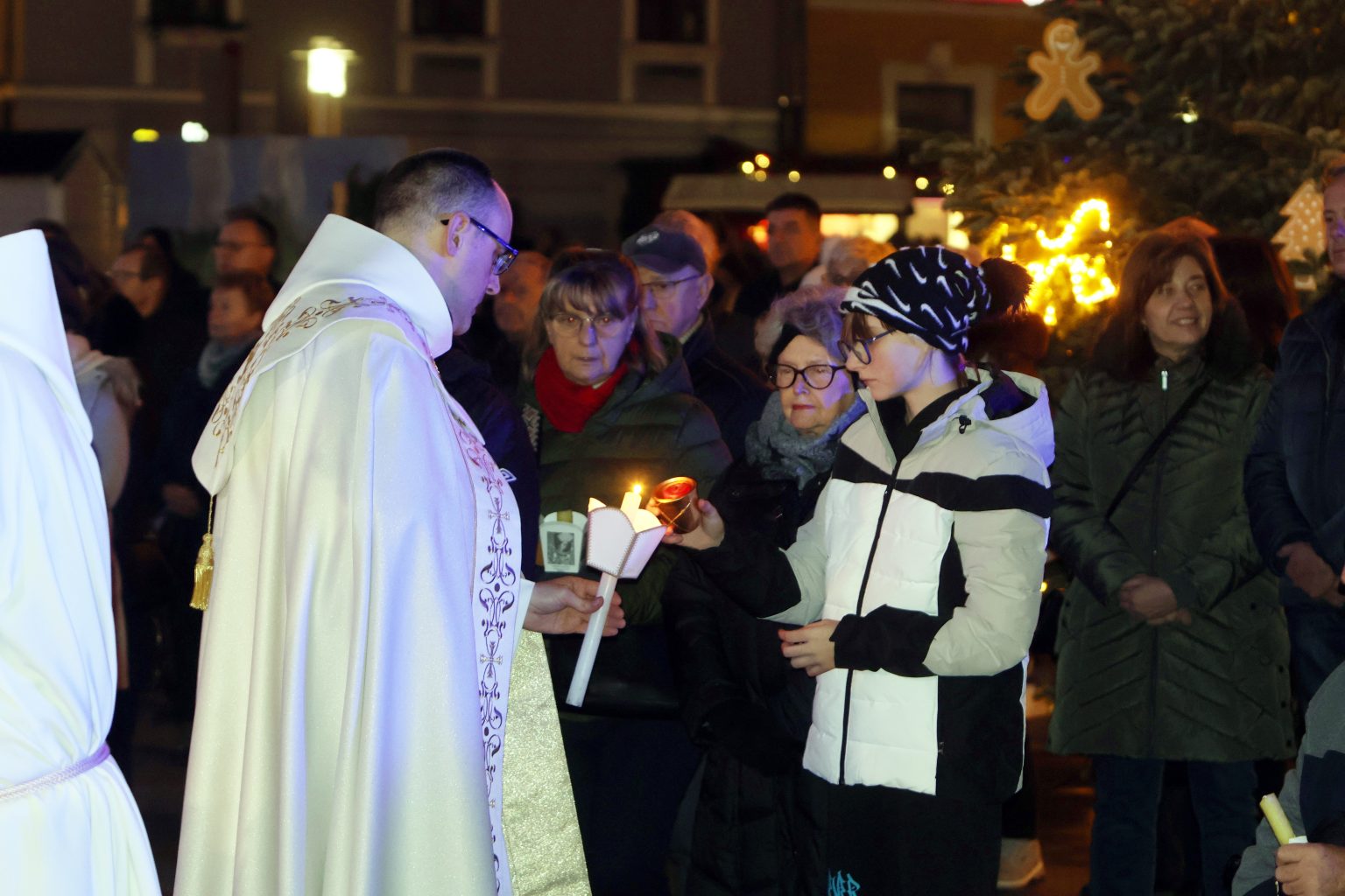 Prije misnog slavlja, na Franjevačkom trgu, fra Crnković je predvodio molitvu i upalio drugu adventsku svijeću, pozivajući vjernike na razmatranje vremena došašća kao razdoblja unutarnje pripreme i zajedništva.