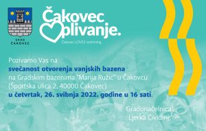 „Toliko dugo očekivani vanjski bazeni ovdje su zbog građana, djece i mladih, nadam se da će ispuniti sva njihova očekivanja. U okviru Dana grada Čakovca, u četvrtak 26. svibnja u 16 sati svečano ćemo otvoriti bazene, uz promociju spota „Kad si u Čakovcu“. Pritom ćemo vidjeti sve ljepote našeg grada popraćene nastupom mnogobrojnih udruga, klubova i sportaša, a čast da se prvi okupaju imat će naši mladi, plivači iz tri čakovečka kluba. Uz vrhunsku enogastronomsku ponudu, mjesta za igru, kampiranje, odmor, sunčališta i drugo, ovo će zasigurno postati novo mjesto ljetnog okupljanja svih uzrasta iz cijele regije i šire“, rekla je čakovečka gradonačelnica Ljerka Cividini i pozvala sve na svečanost otvorenja, ali i na kupanje od petka, 27. svibnja kada i službeno otvaramo novu sezonu kupanja na otvorenom.