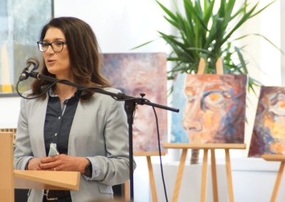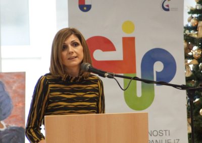 Rad Centra izvrsnosti iz umjetničkog područja pozdravila je i gradonačelnica Grada Čakovca Ljerka Cividni koja je prilikom svečanosti otvorenja istaknula da svaka izložba, koncert ili bilo koja kreativna aktivnost naših mladih otvara nove horizonte starijim generacijama. “Čakovečka gimnazija nosi ime osobe koja je od osoba rođenih u našem kraju svjetski najpoznatija – Josipu Štolceru Slavenskom, jednom od najznačajnijih svjetskih kompozitora 20. stoljeća, za kojeg mnogi kažu da je bio ispred svog vremena. Stoga nije ni slučajnost što je jedan ovakav centar izvrsnosti, kao jedan od rijetkih u Hrvatskoj iz područja umjetnosti i jedini koji objedinjuje nekoliko područja, upravo u našem gradu i našoj školi koja je također ispred svog vremena. U Čakovcu i Međimurju odavno smo shvatili da ulaganje u obrazovanje nije samo izgradnja novih objekata, već da je vrlo važno ulagati u projekte i programe koji našoj djeci i mladima omogućuju stjecanje što kvalitetnijeg znanja kojeg će kasnije upotrijebiti u nastavku školovanja te budućoj poslovnoj karijeri. Centar izvrsnosti odlično se uklapa u ovu strategiju jer našim učenicima omogućava upoznavanje i rad s eminentnim hrvatskim umjetnicima, iz svakog područja i to ovdje u Čakovcu“, rekla je pritom gradonačelnica Cividini u svom obraćanju prisutnim učenicima, profesorima i mentorima.