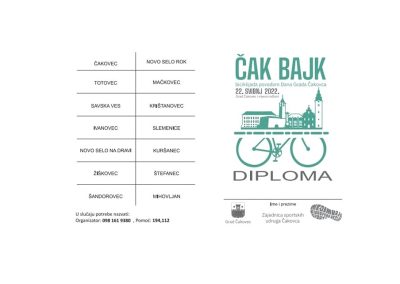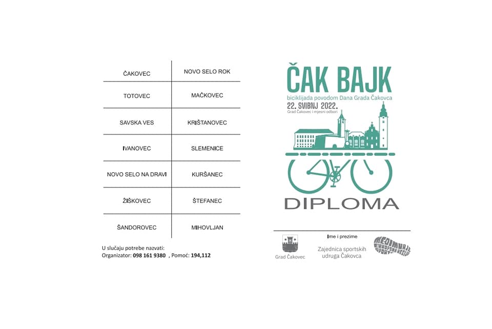 U sklopu projekta Međimurje Europska regija sporta 2022., a povodom Dana Grada Čakovca, županijska i gradska sportska zajednica organizira prvu čakovečku biciklijadu pod nazivom „ČAK BAJK“.