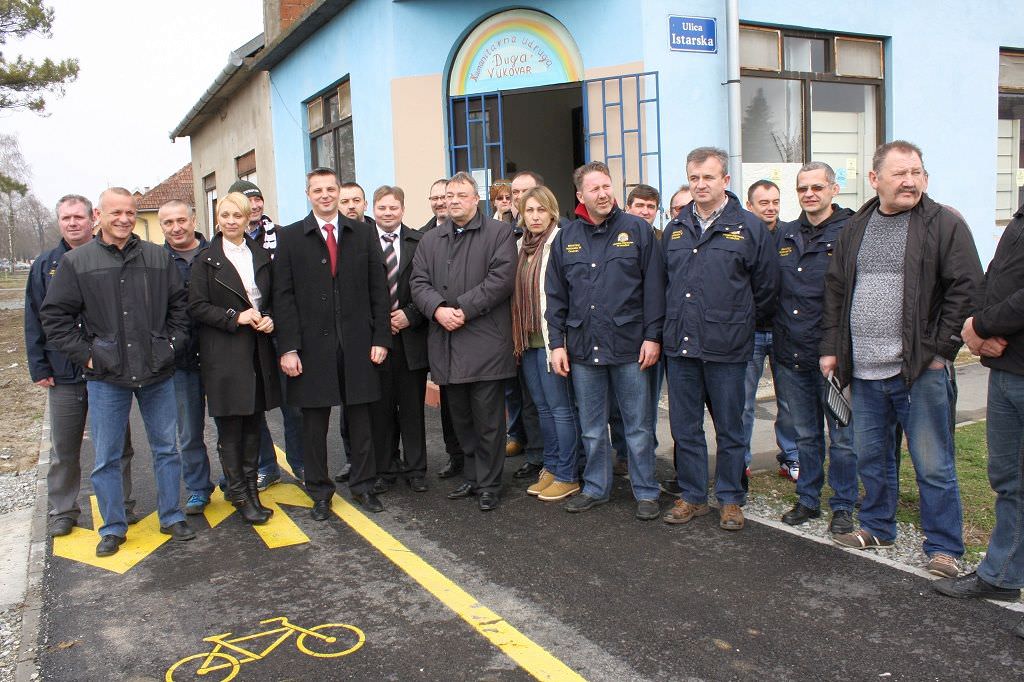 Nakon prijema, konvoj od 5 kombi vozila ispunjenih prikupljenom robom ,uputio se prema socijalnom dućanu. Tamo su ih dočekale članice udruge i vukovarski gradonačelnik Ivan Penava. Članice udruge “Duga” koje vode socijalnu samoposlugu istaknule su da smo jedni od mnogih koji smo se odazvali na njihov poziv na pomoć. Unatoč tome, ova donacija mnogo će pomoći brojnim vukovarskim obiteljima, jer je u gradu mnogo nezaposlenih bez ikakvih primanja. Inače, udruga vodi socijalnu samoposlugu, ali i svojim aktivnostima želi olakšati tešku svakodnevnicu o ovom gradu te svojim sugrađanima pomoći u liječenju ratnih trauma.