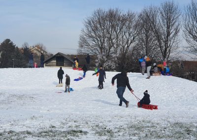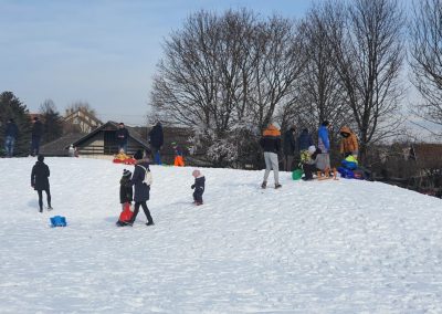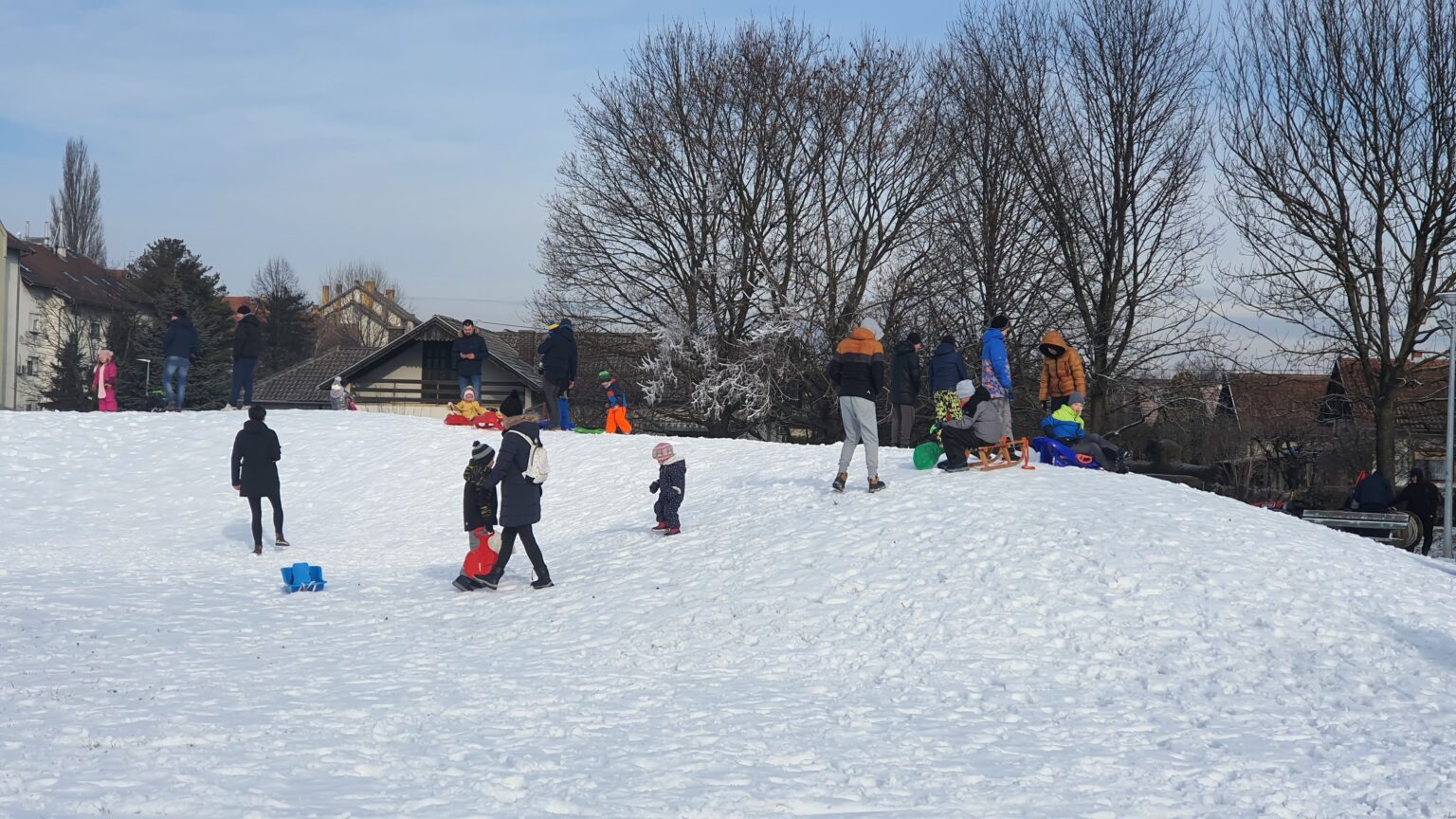 Od jutarnjih sati snježni brežuljak vrci saonicama i ljubiteljima snijega.