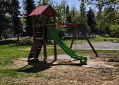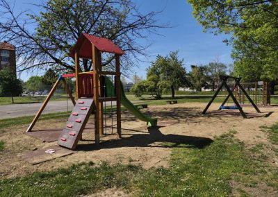 Uređenje dječjeg igrališta u Čakovcu uključivalo je uklanjanje dijela igrala i izvedba novog dječjeg igrališta. Od 9 postojećih igrala zadržana su samo dva (ljuljačka s dvije njihaljke i vrtuljak) te postojeća urbana oprema (klupe).
