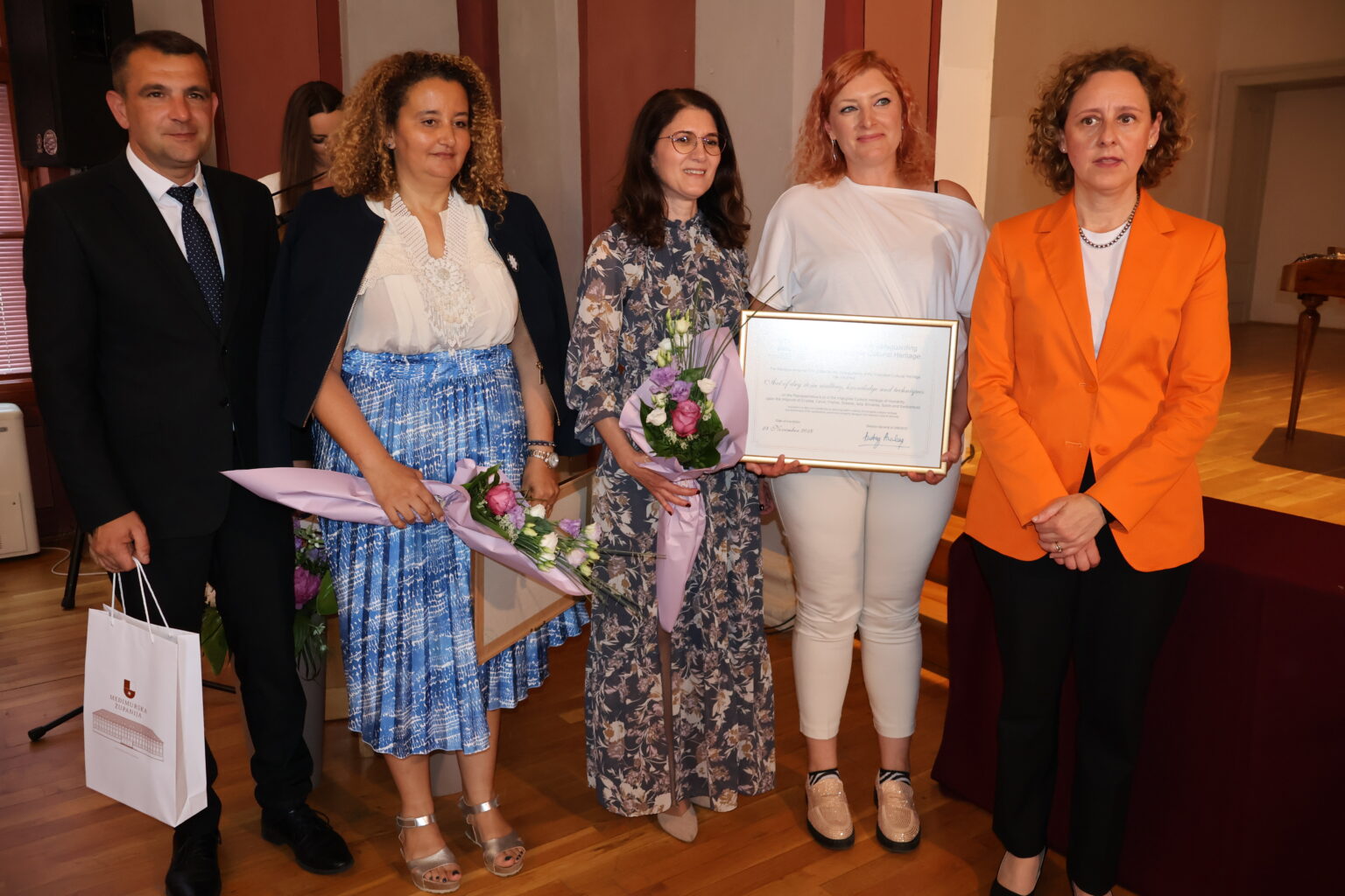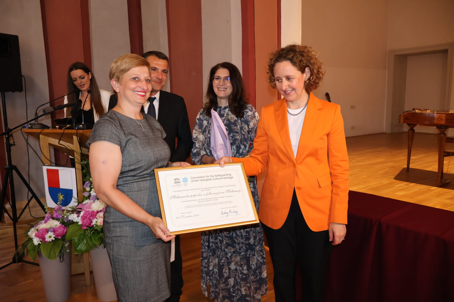 Svečanosti dodjele povelja Ministarstva kulture i medija,uz ministricu i suradnike, prisustvovali su brojni visoki uzvanici među kojima i glavna tajnica Hrvatskog povjerenstva za UNESCO Rut Carek, pročelnica Konzervatorskog odjela u Varaždinu Vesna Pascuttini Juraga, predsjednik Skupštine Međimruske županije Dragutin Glavina za potpredsjednikom Ivicom Baksa, saborska zastupnica Boška Ban Vlahek, gradonačelnici grada Preloga i Mursko Središće Ljubomir Kolarek i Dražen Srpak, načelnici općina, brojni predstavnici kulturno umjetničkih udruga, kulturnih ustanova kao i brojni pojedinci koji su svojim potpisom dali potporu nominaciji međimurske popevke na UNESCO-ov reprezentativni popis nematerijalne baštine čovječanstva.