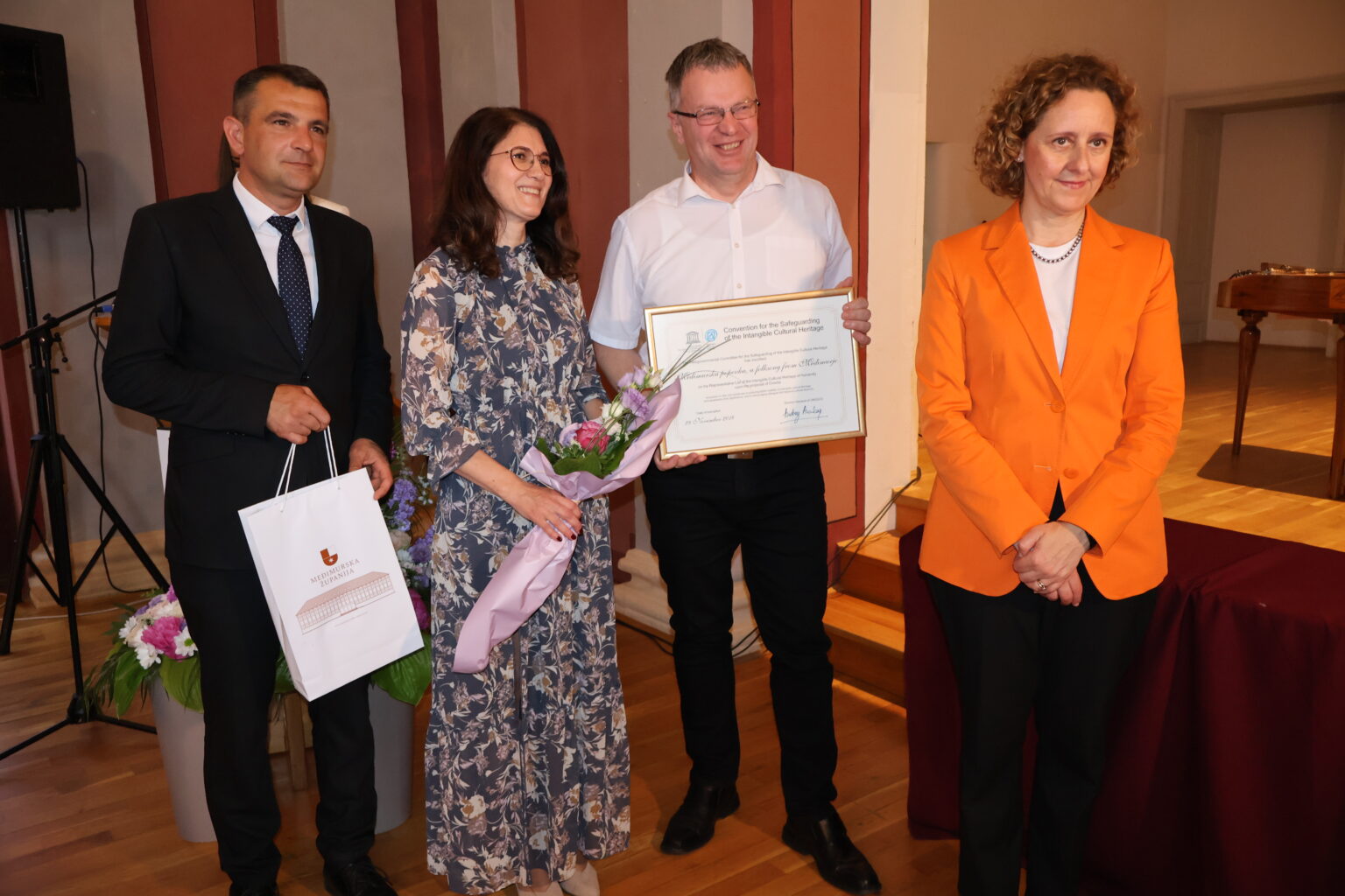 Danas je u zgradi Scheier u Čakovcu ministrica kulture i medija Republike Hrvatske Nina Obuljen Koržinek na prigodnoj svečanosti dodijelila povelje zaslužnima za uvrštenje međimurske popevke 2018. godine u Reprezentativni popis nematerijalne kulturne baštine čovječanstva UNESCO-a. Povelje su dodijeljene Međimurskoj županiji, Muzeju Međimurja Čakovec, Zajednici hrvatskih kulturno-umjetničkih udruga Međimurske županije, Općini Sveti Juraj na Bregu, Kulturno-umjetničkoj udruzi Seljačka sloga Nedelišće te Udruzi Matapur. Iza ovih imena nalaze se brojni ljudi koji su predano radili na priznanju međimurske popevke i koji su taj veliki posao iznijeli kao pobjednici.