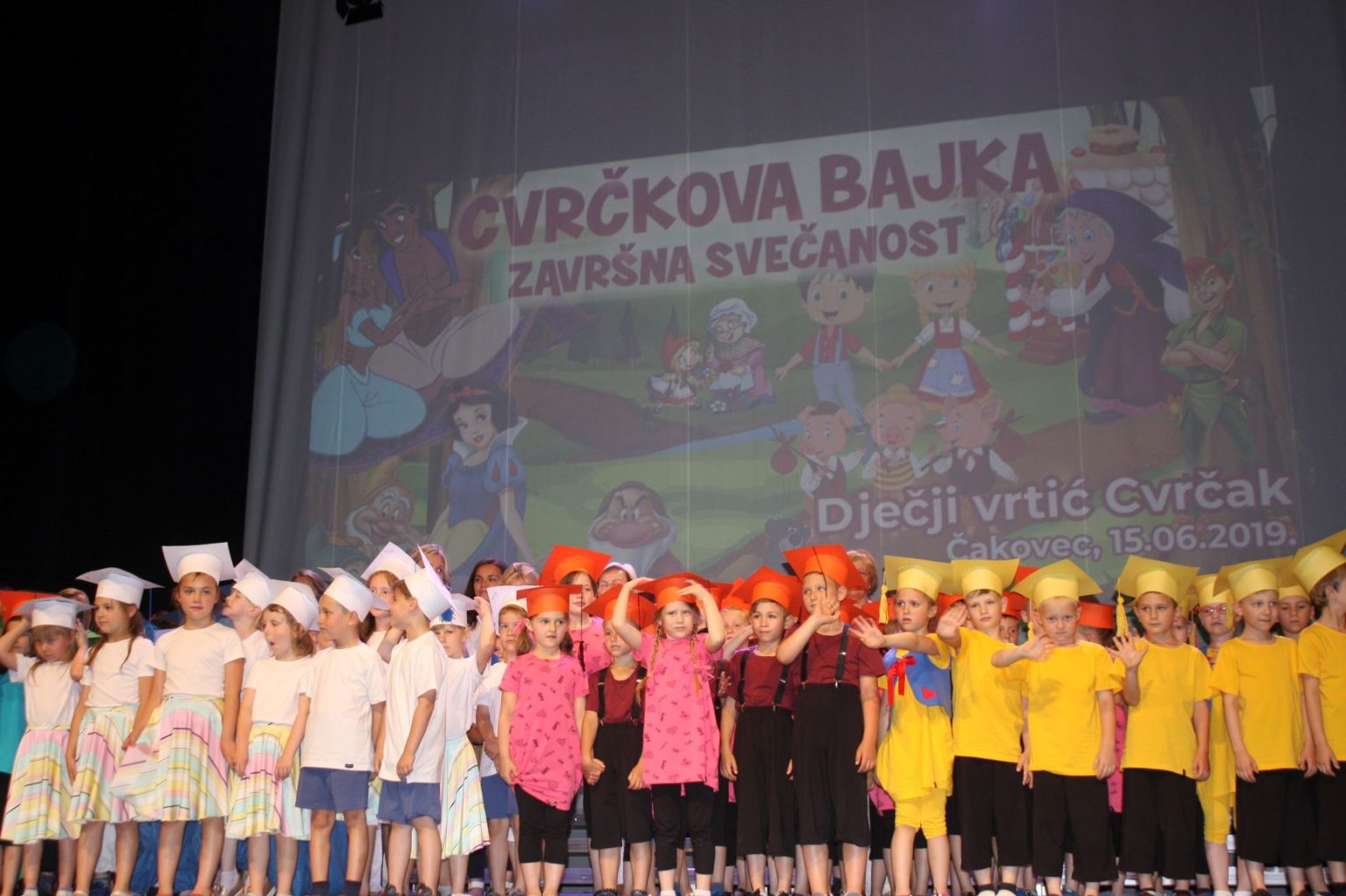 Pozornica čakovečkog Centra za kulturu, i ove je subote, 15. lipnja, bila ispunjena dječjom radošću, na još jednom oproštaju generacije predškolaca. Ovoga puta, od vrtićkih se dana oprostilo 120 mališana Dječjeg vrtića Cvrčak, kako iz matičnog objekta, tako i iz podružnica Maslačak, Krijesnice, Stonoga i Pčelice. Šarolik program inspiriran najpoznatijim bajkama, pričama i animiranim filmovima, iz prepunog su gledališta pratili mnogobrojni roditelji, bake i djedovi. Djecu su za nastupe pripremile njihove odgajateljice, a na još jednoj generaciji, kolegicama je čestitala ravnateljica Dječjeg vrtića Cvrčak, Lidija Varošanec. Ujedno je i mališanima poželjela puno sreće u novoj stranici njihovog života. Djeci i njihovim tetama, prigodnu poruku uputio je i zamjenik čakovečkog gradonačelnika Zoran Vidović.