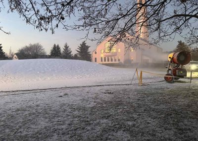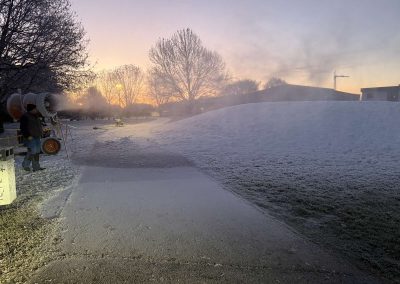 Topovi za umjetni snijeg na čakovečkom Jugu ostaju još tijekom cijelog današnjeg dana, a ako vremenski uvjeti to dopuste, top za umjetni snijeg bit će premješten i u Perivoj Zrinskih, gdje je planirano zasnježivanje velikog gradskog sanjkališta podno zidina Starog grada. U planu je i stvaranje umjetnog snijega na sanjkalištu u Ivanovcu kod osnovne škole.