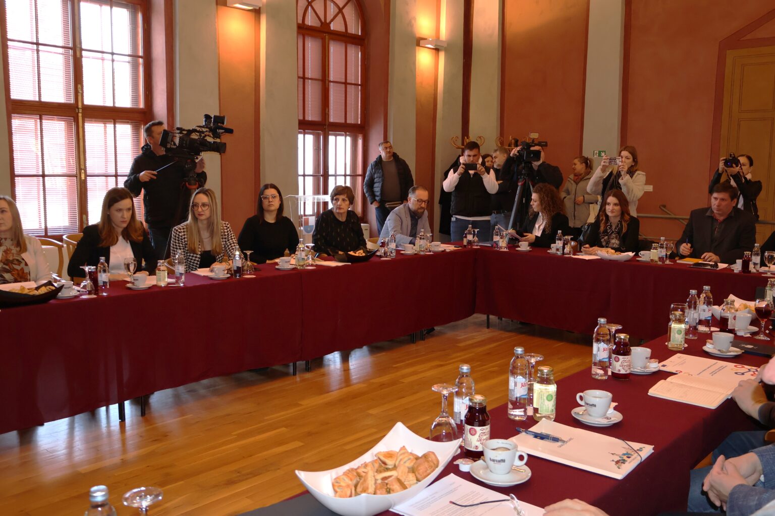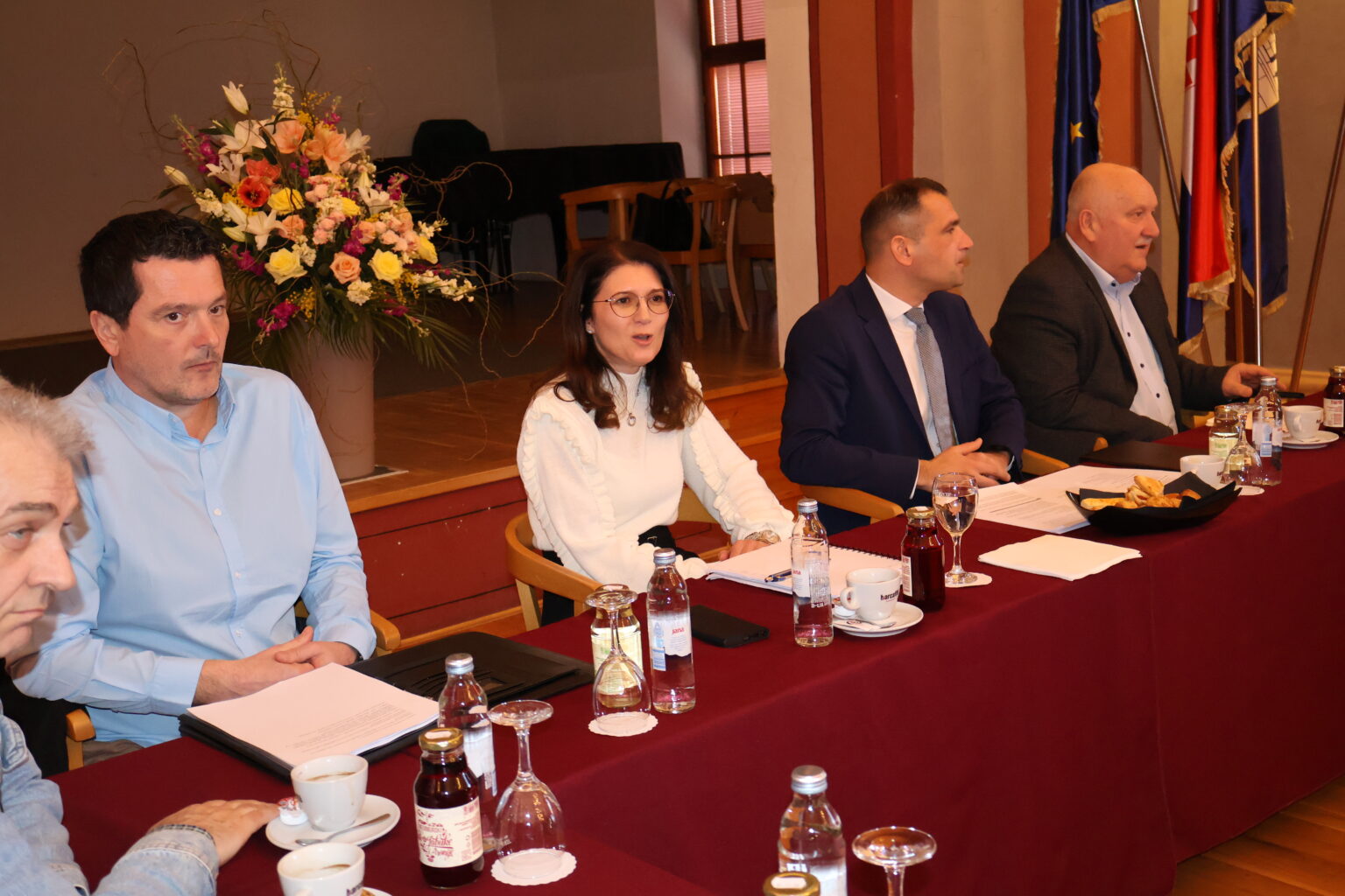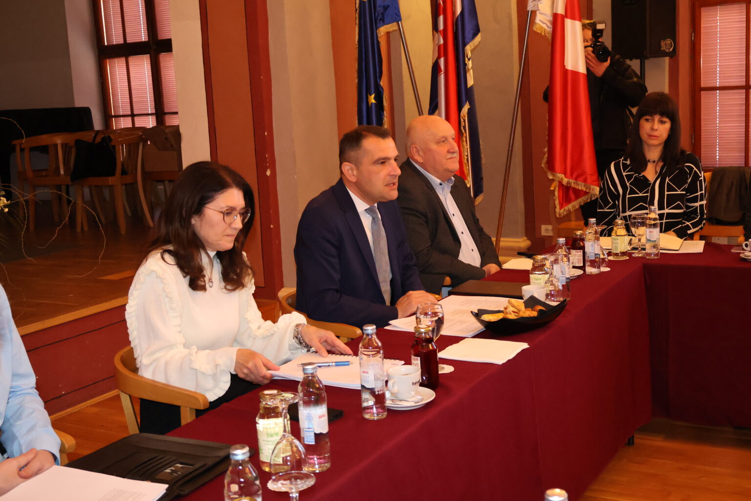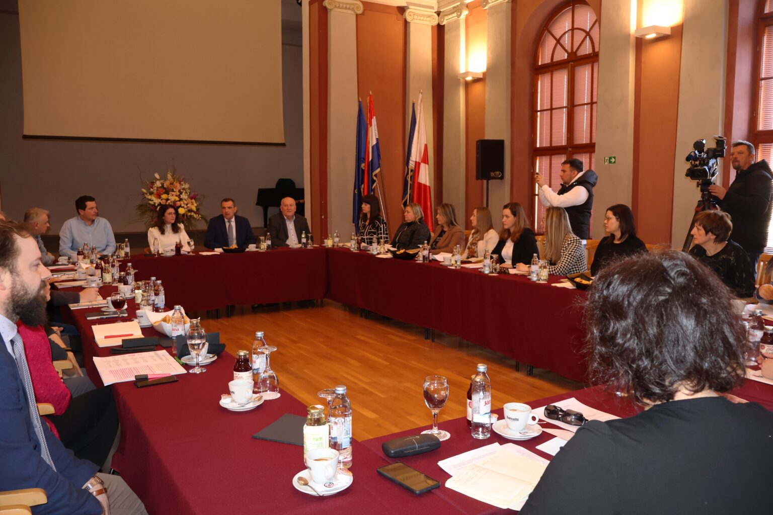 Župan Međimurske županije Matija Posavec sa zamjenikom Josipom Grivcem i gradonačelnica Čakovca Ljerka Cividini s pročelnicima i suradnicima održali su radni sastanak o važnim projektima za Grad Čakovec.